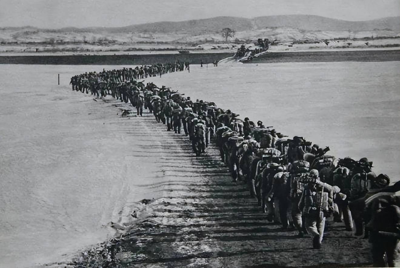 接下来谈谈另一张抗美援朝战争期间的经典照片。这张照片背景是志愿军的士兵们跨越鸭绿江,出国参加作战。很多人以为这张照片是在1950年10月拍摄的,那时正是第一批志愿军跨过鸭绿江的时间,但这也是一个误解。实际上,第一批志愿军为了避开美军的空袭,都是在夜间偷偷过江,而夜晚根本拍不出这样的照片。这张照片拍摄的时间是在1951年2月18日下午。那时,统领的第十九兵团正在赴朝作战,而第64军则是白天通过鸭绿江的。那时,军长曾思玉和政委王昭站在江边,观看部队过江,感慨万千。王昭政委特意让部队的摄影员黎民记录下这个珍贵的瞬间,黎民于是拍下了这张历史性的照片。这张照片后来被《人民日报》等媒体广泛使用,成为了志愿军赴朝作战的标志性画面。