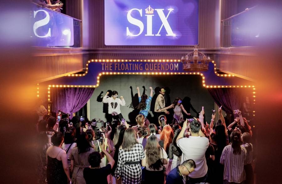 就像制作人肯尼·瓦克斯强调的,《SIX》打破了传统观演形式,“观众是这场演出的第七个主角”。如今在上海,这种参与感已突破剧场物理边界,有了更多新的打开方式。比如“SIX上海之星”主题游轮就将音乐剧的紫色风暴引向了黄浦江。6月6日首航当晚的“皇后之夜”派对,船舱变身为移动舞台。在专业DJ的打碟声中,音乐剧迷们随着剧中热门曲目的旋律纵情歌舞,其中大多是用心打扮的姑娘们。“我从来没有想象过,可以一边欣赏浦江两岸的景色,一边随着剧中的音乐合唱、跳舞,这真的太幸福了。”为了《SIX》专程从南京来上海看戏、游玩的陈雨,在甲板上对记者露出满意的笑容。